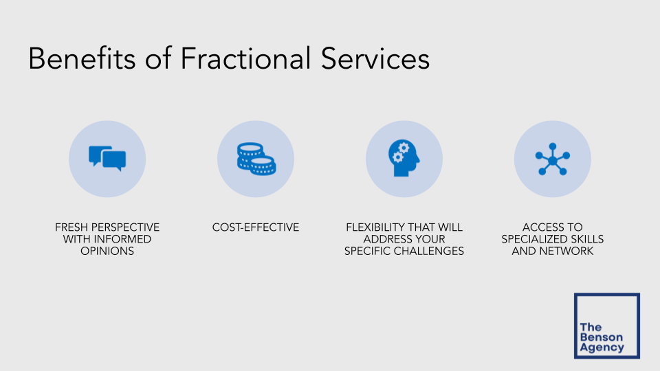 Do they bring additional resources? An internal staff person brings their own experience and skills. A fractional staff member may bring along others from their agency that can help provide service to you at no additional cost.